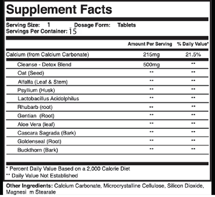 Ingredients For Cleanse (15 Day supply - 15 Capsules )